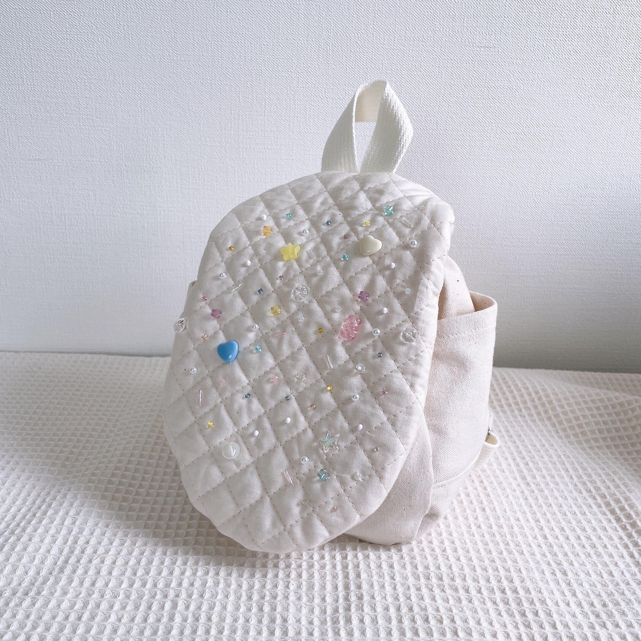 初めてのリュックにピッタリなサイズのベビーリュックです◡̈⃝❁内側にはキルティングをつかっているのでふわふわのリュックです♡
